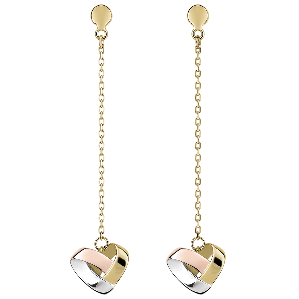 Das Herz - Ikone des Juwelierhandwerks - wurde von Edenly in einer Origami-Version überarbeitet, in der sich die drei Goldfarben mit Originalität und Eleganz verbinden. Hier ein Modell von Ohrringen mit Kettchen, welche die sanften und weichen Bewegungen des Gesichts begleiten. Tricolor (750/-): 1.2 g. Weitere Abmessungen