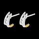 Zwei feine Stäbchen aus Weißgold mit Gelbgold legen sich wellenförmig um eine funkelnde Diamantentrilogie.