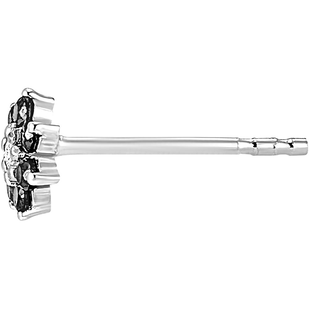 Ein Hochkonzentrat an Zartheit und Weiblichkeit steckt in diesen leichten Margeriten aus Weißgold mit schwarzem Diamantbesatz und diamantenen Blütenherzen. 2 Diamanten : 0.03 Karat - Weißgold (375/-): 0.5 g. Schwarzer Diamant : 14 - Total: 0.012 Karat Weitere Abmessungen