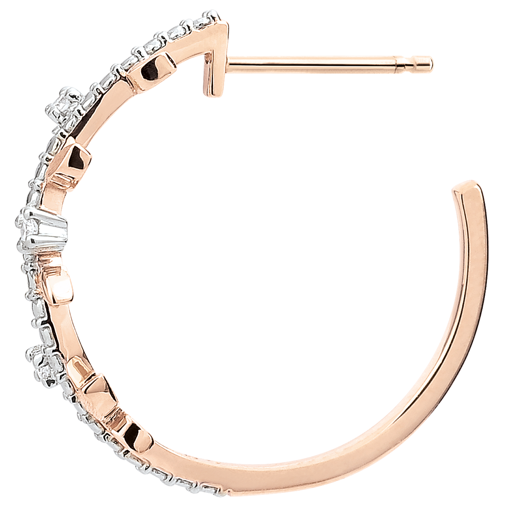 Ein romantisches Zusammenspiel aus glänzendem und gebürstetem Roségold findet sich in den verschiedenen Blattformen dieser romantischen Creolen wieder, welche jeweils mit 6 Diamanten besetzt sind. 6 Diamanten : 0.06 Karat - Rotgold (375/-): 2.2 g. Weitere Abmessungen