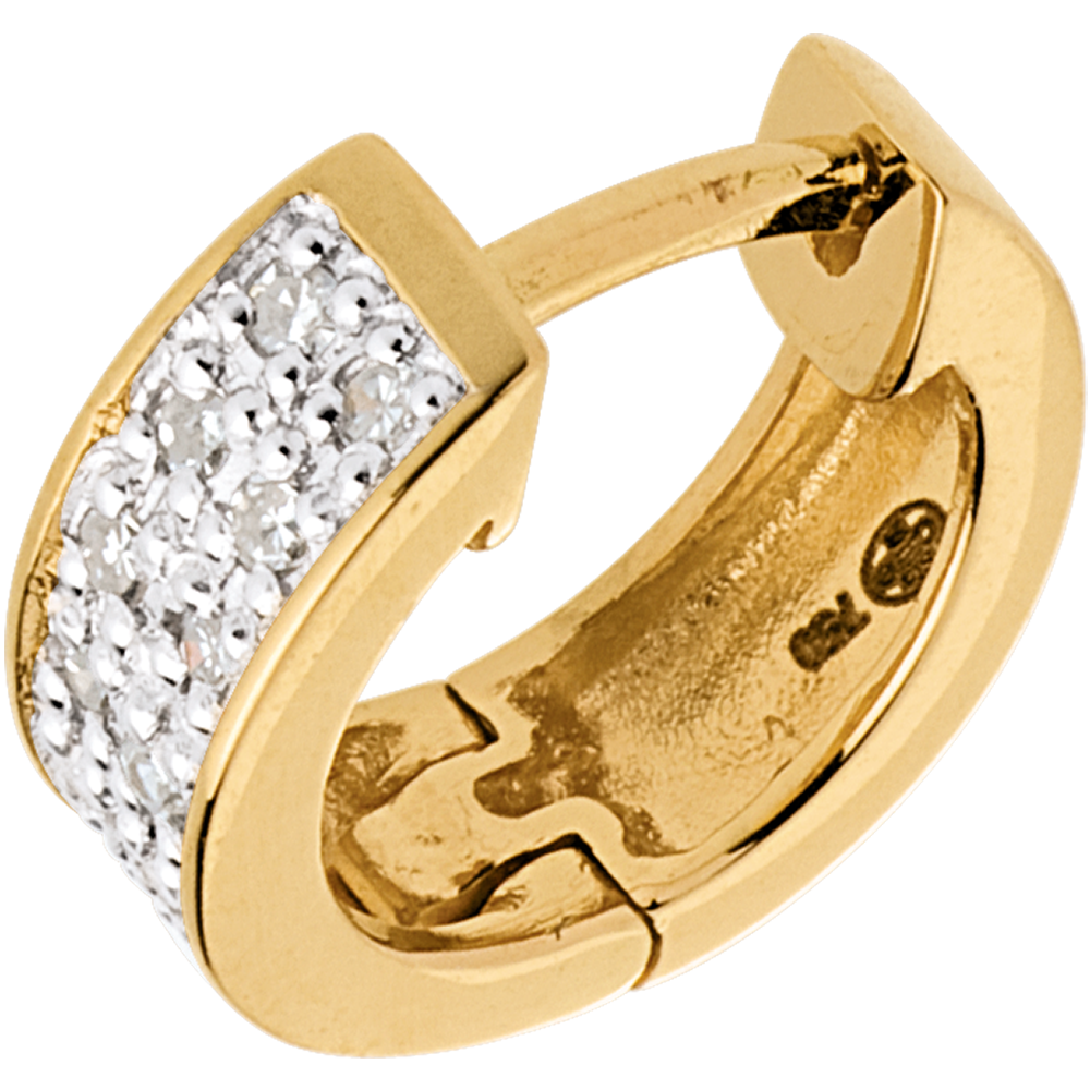 Das umwerfende Funkeln dieses minutiös und raffiniert angeorneten Diamantenpavés wird Ihrem Gesicht einen kosmischen Glanz verleihen. 24 Diamanten : 0.12 Karat - Gelbgold (750/-): 2.5 g. Weitere Abmessungen