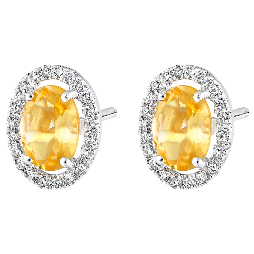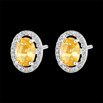 Jeder Ohrstecker ist mit einem Citrin besetzt, der wie ein Nest ringsum von Diamanten geschützt wird. 44 Diamanten : 0.2 Karat - Weißgold (750/-): 1.8 g. Citrin gelb : 2 - Total: 1.22 Karat Weitere Abmessungen