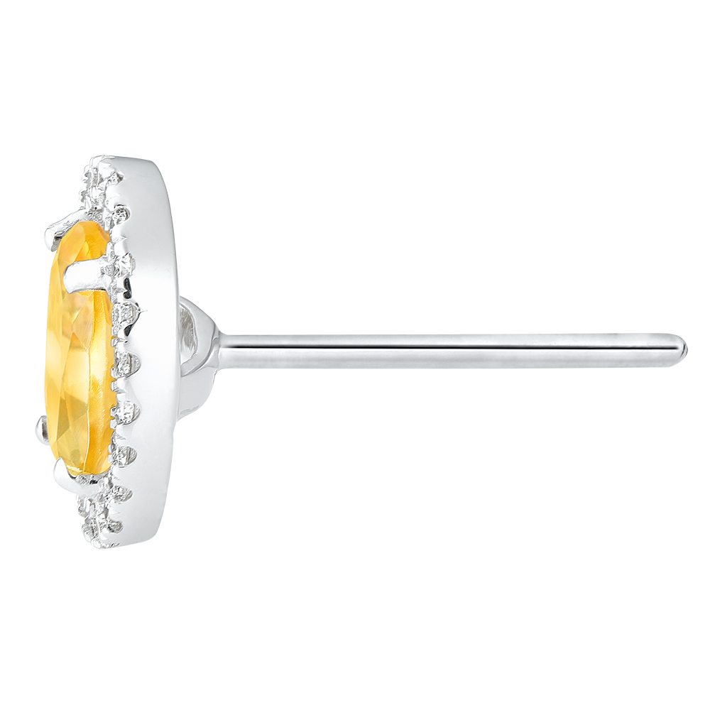 Jeder Ohrstecker ist mit einem Citrin besetzt, der wie ein Nest ringsum von Diamanten geschützt wird.