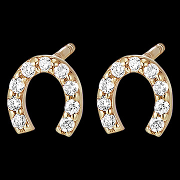 Hufeisenförmige Ohrstecker als Glücksbringer, mit 18 Diamanten besetzt.