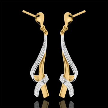 Diese Ohrringe sind wie fliessendes Wasser - eine lebendige Verschlingung von Gelbgold und Weissgold mit Diamanten.