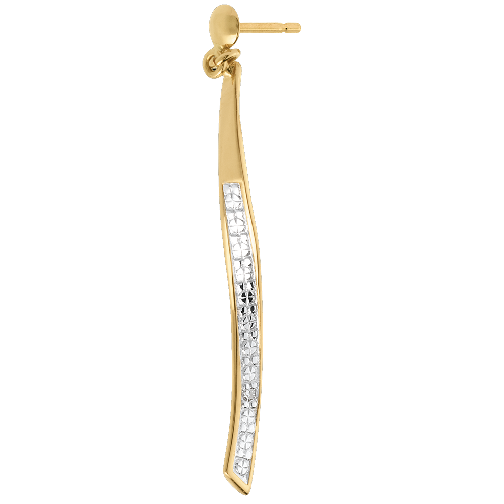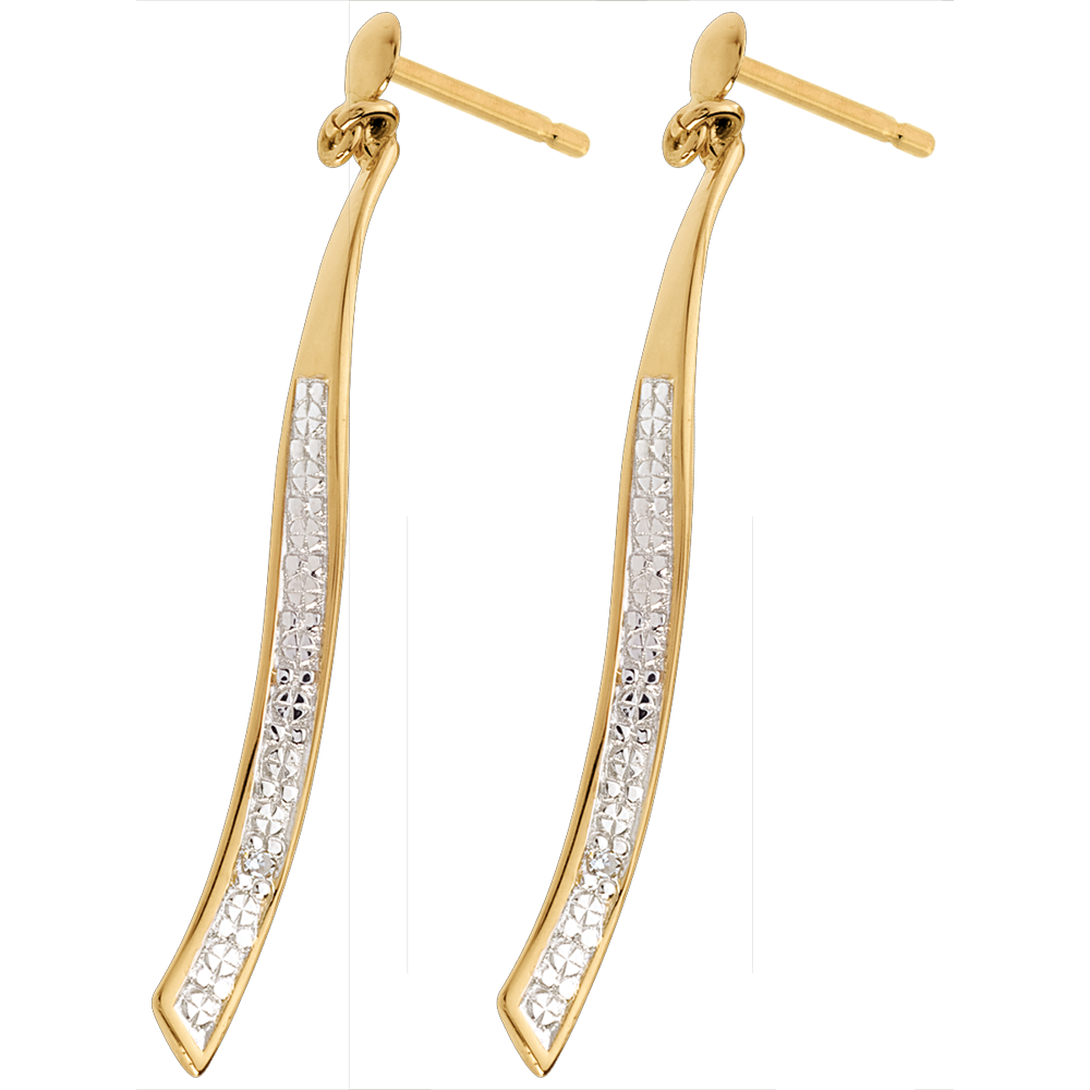 Diese eleganten Ohrringe, mit funkelnden Diamanten verziert, erinnern an einen fliegenden Phönix. Elegant und sinnlich. 2 Diamanten : 0.01 Karat - Gelbgold (750/-): 1.5 g. Weitere Abmessungen