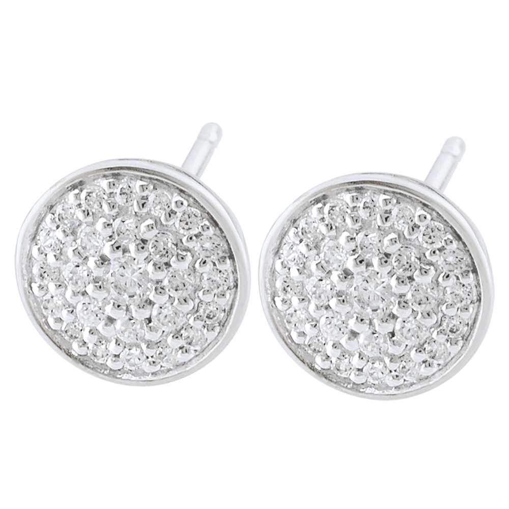 Eine Konstellation von Diamanten, geballt in einem Kreis, der in vollem Glanze an Ihren Ohren funkelt. 25 Diamanten an jedem Ohrring. 50 Diamanten : 0.19 Karat - Weißgold (375/-): 0.9 g. Pavé aus natürlichen Diamanten : 50 - Total: 0.19 Karat Weitere Abmessungen