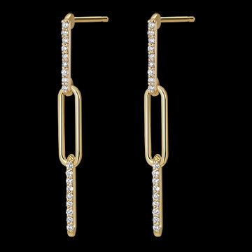 Ein Trio aus zarten, diamantbesetzten Kettengliedern aus Gelbgold, die elegant hin- und herschwingen. Moderne, feminine Hängeohrringe 36 Diamanten : 0.14 Karat - Gelbgold (750/-): 1.5 g. Weitere Abmessungen