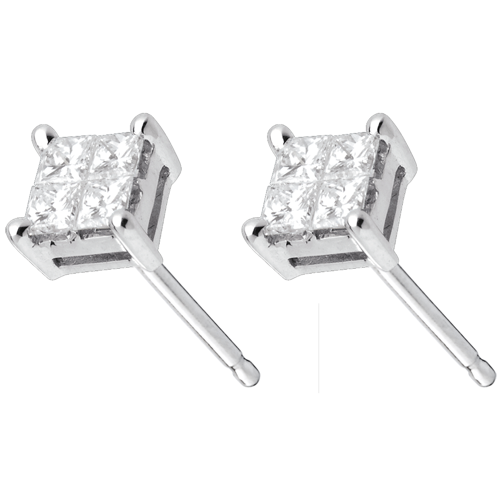 Diese prachtvollen Diamantohrstecker erinnern an ein funkelndes Schachbrett. Ein architektonisches Meisterwerk. Diamant : 0.34 Karat - Weißgold (750/-): 1 g. Pavé aus natürlichen Diamanten : - Weitere Abmessungen