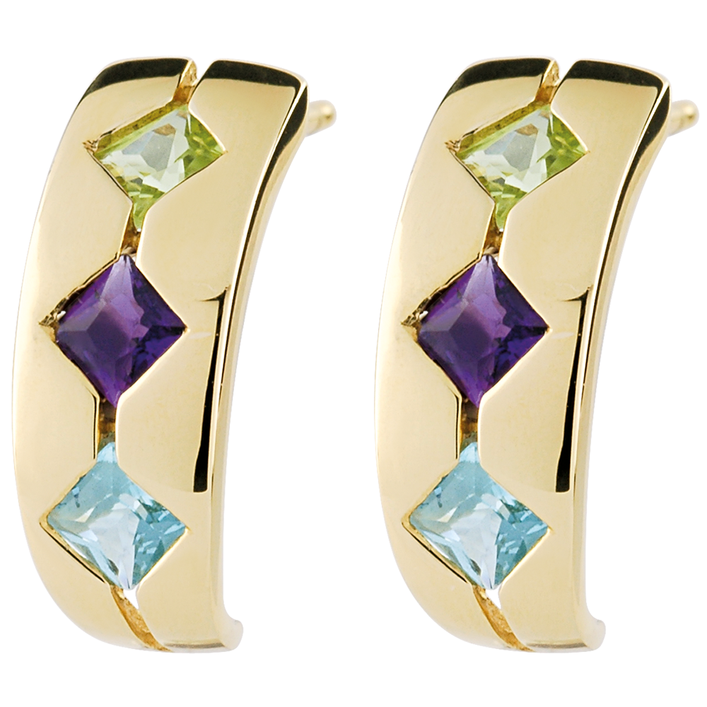 Das Paar enthält 6 Halbedelsteine (Topas, Amethyst, Peridot) mit insgesamt 0,63 Karat, alle in Very Good Qualität.