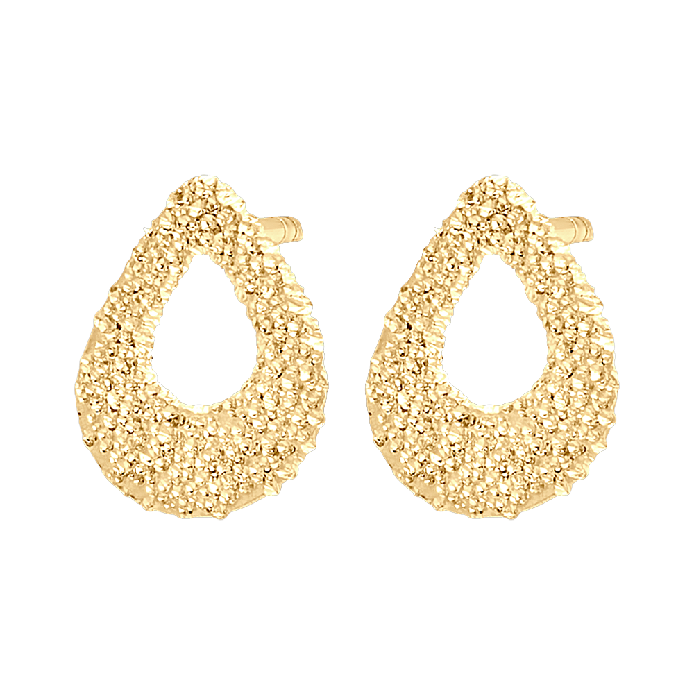 Ein Paar entschieden moderne Ohrstecker aus Gelbgold. Geschmückt mit einem strukturierten Goldbirnenmotiv - Diamanteffekt. Liebe auf den ersten Blick garantiert.