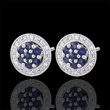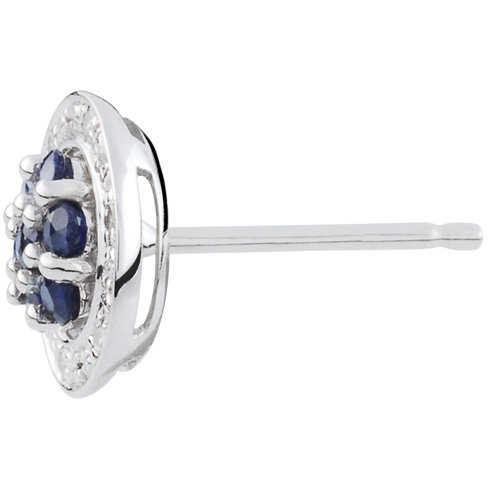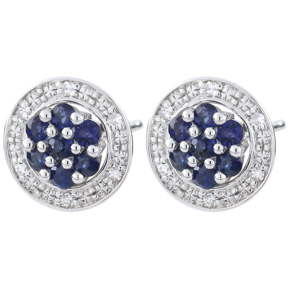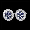 Saphire, umrandet von einem Kreis aus Weißgold und Diamanten. 12 Diamanten : 0.04 Karat - Weißgold (375/-): 1 g. Blauer Saphir : 14 - Total: 0.32 Karat Weitere Abmessungen