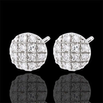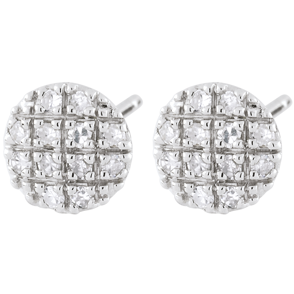 Ein wertvolles und funkelndes Karomuster, besetzt mit schillernden Diamanten. Ein zetiloses und klassisches Schmuckstück. 24 Diamanten : 0.1 Karat - Weißgold (375/-): 0.6 g. Weitere Abmessungen
