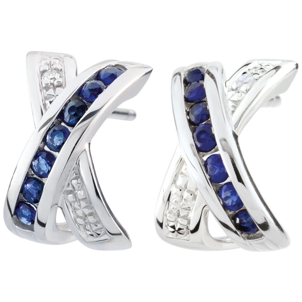 SATURN NR. 2Ohrringe Kreuz - Weißgold 375/-(9Kt) - Blauer Saphir ID : 2268 4.8 (12)