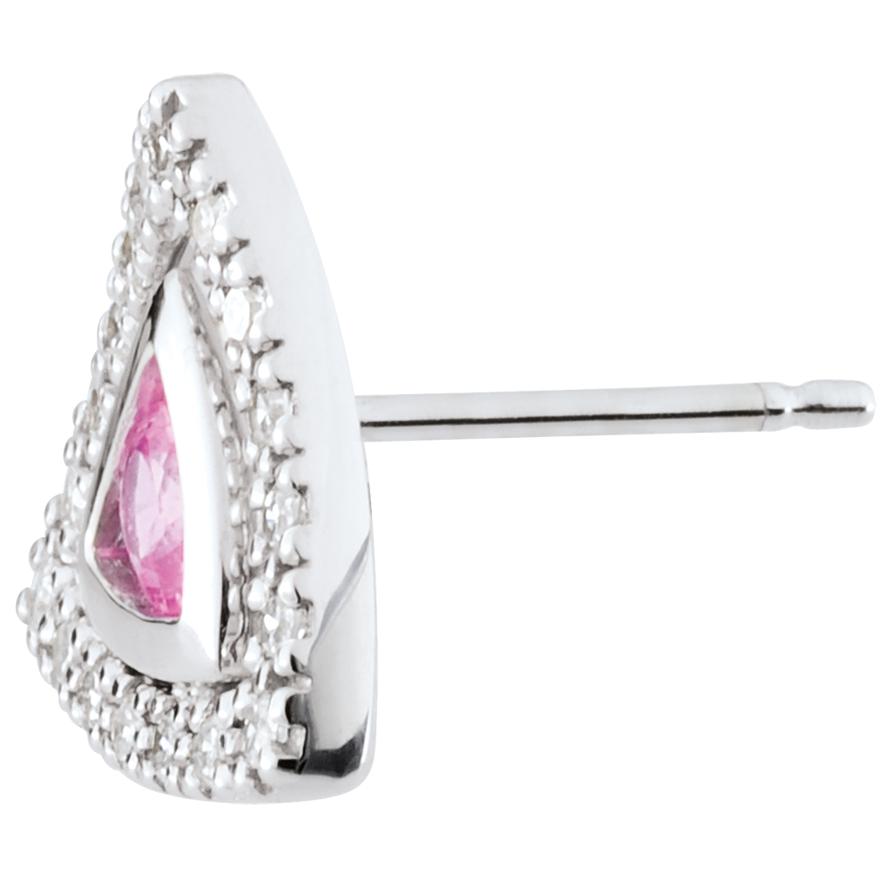 Die Ohrringe sind mit zwei rosa Saphiren der Qualität A++ und einem Pavé aus H-I Diamanten mit insgesamt 0,18 Karat besetzt.
