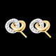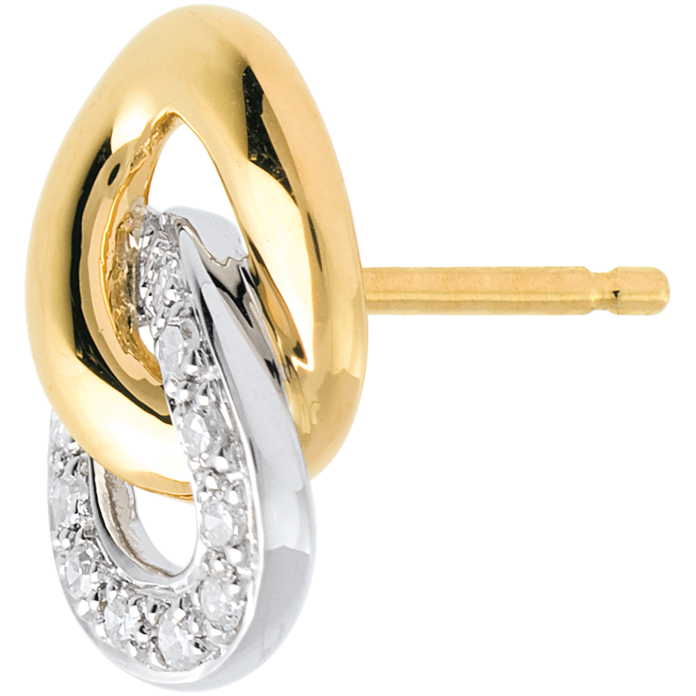 Zwei eng verbundene gelbgoldene Ohrringe im Kettenmotif mit funkelnden Diamanten besetzt, ein verspieltes Exemplar. 20 Diamanten : 0.08 Karat - Weiß-und Gelbgold (750/-): 2.2 g. Weitere Abmessungen