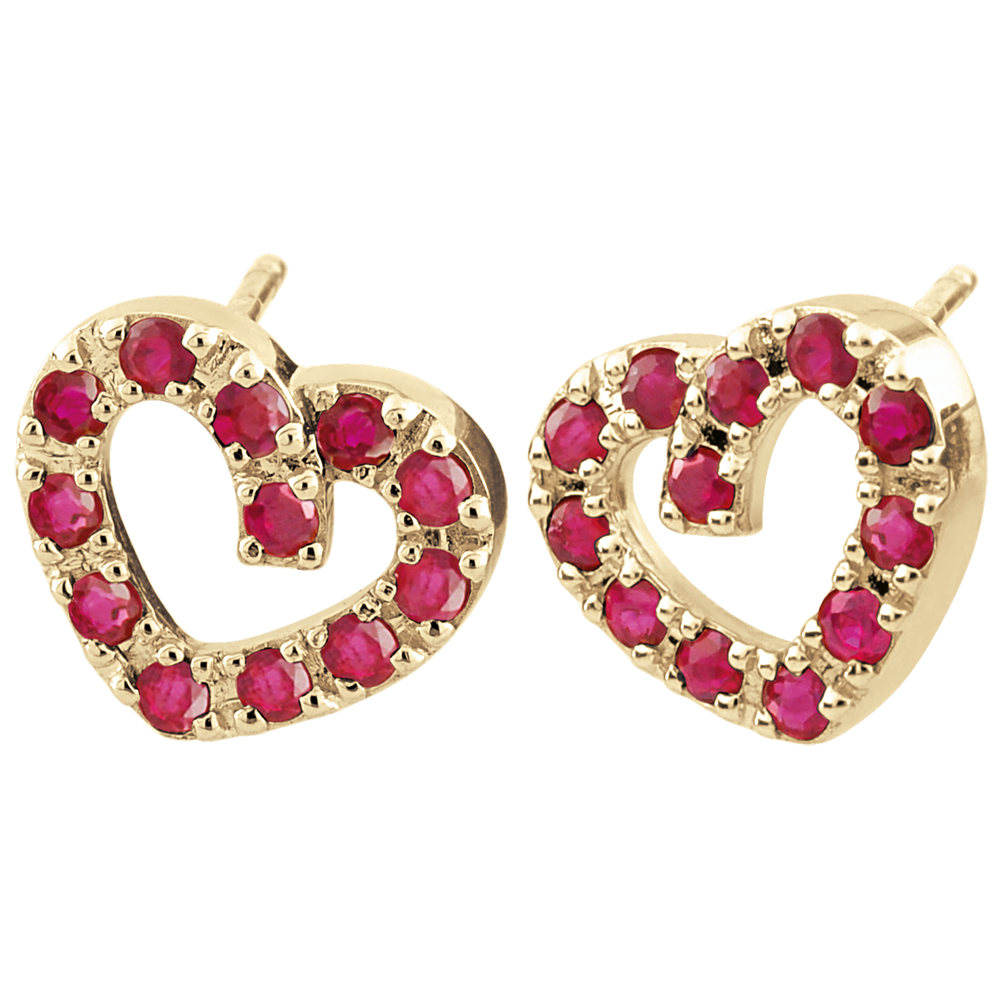 Süße Ohrstecker aus Gelbgold, besetzt mit Rubinen. Sie lassen Ihr Gesicht romantisch erstrahlen.