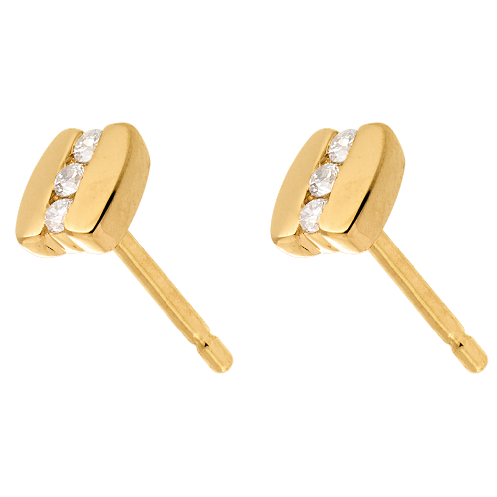 Ohrstecker Trilogie mit Spannfassung in Gelbgold - 6 Diamanten