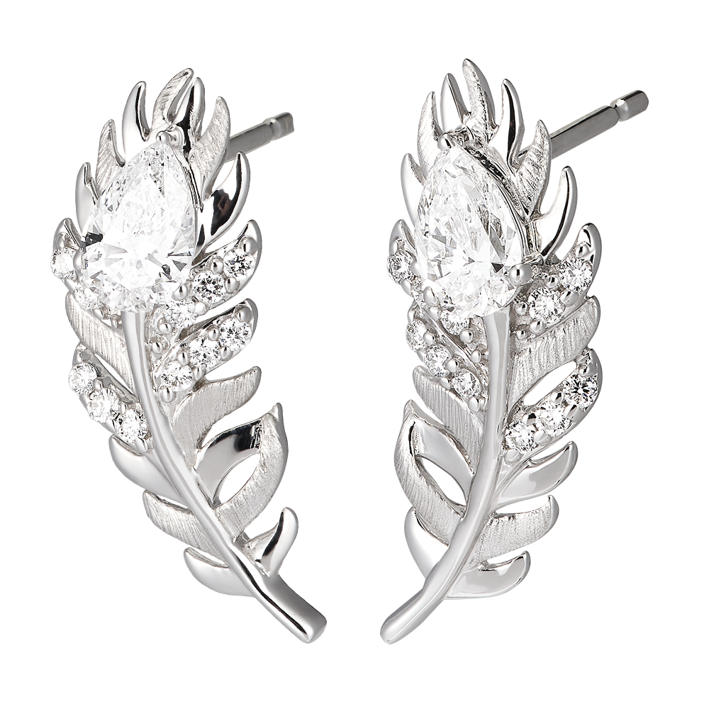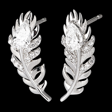 Die Altesse-Ohrringe verkörpern raffinierte Eleganz. Aus 9 Karat Weißgold sind sie wunderschön mit 24 synthetischen Diamanten verziert, darunter 2 birnenförmige Diamanten von 0,25 Karat, die das Licht brillant einfangen. Jedes Detail dieser Ohrringe spiegelt die Pracht der Federn wider, das Markenzeichen der Panache-Kollektion. Weißgold (375/-): 1.9 g. Labordiamant : 24 - Total: 0.606 Karat Weitere Abmessungen