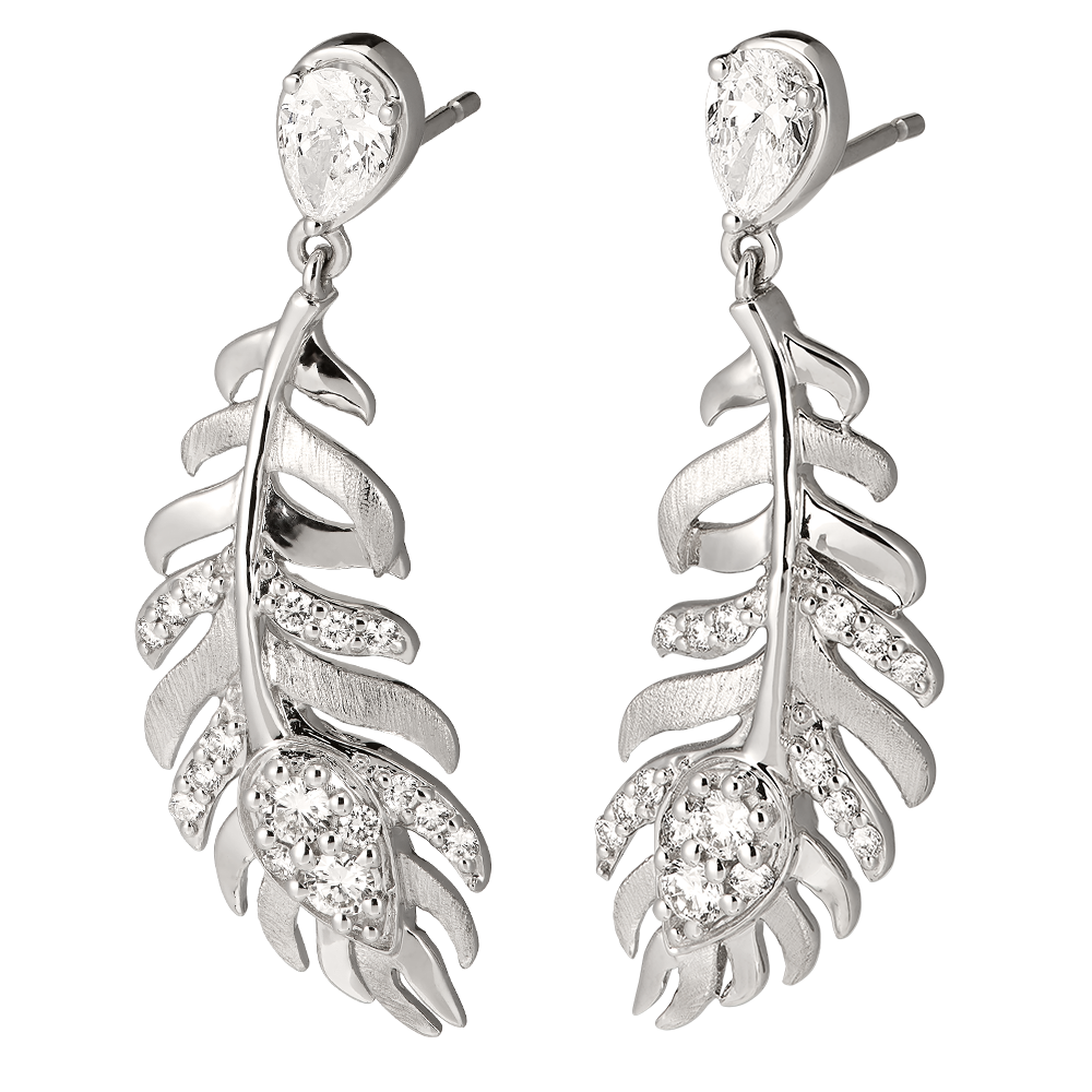 Die Infante-Ohrringe aus 18 Karat Weißgold sind elegant inspiriert von schwebenden Federn, dem Emblem der Panache-Kollektion. Verziert mit 34 synthetischen Diamanten, darunter 2 birnenförmige Diamanten von 0,25 Karat, fängt dieses Schmuckstück bei jeder Bewegung das Licht ein und verleiht Ihrem Outfit eine luftige Eleganz und einen spektakulären Glanz. Weißgold (750/-): 5 g. Labordiamant : 34 - Total: 0.855 Karat Weitere Abmessungen