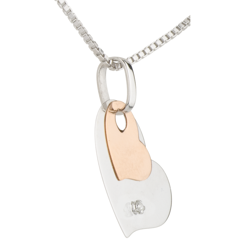 Das Herz aus Weißgold ist mit einem weißen Diamanten von 0,004 Karat, HSI-Qualität, besetzt, der dem Schmuckstück eine dezente Kostbarkeit verleiht.
