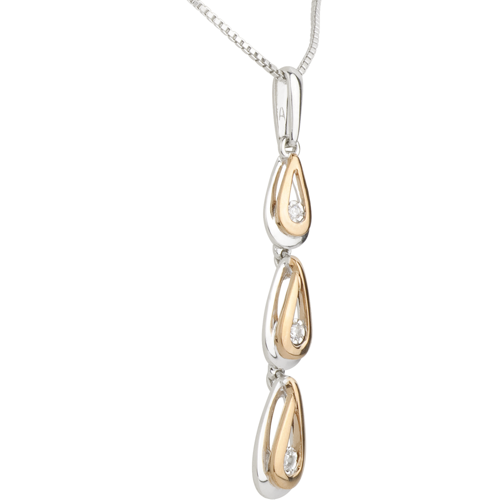 Drei magische Tropfen in Rosé- und Weißgold, die jeweils mit einem edlen Diamanten geschmückt sind, fließen in diesem zauberhaften Anhänger zusammen.