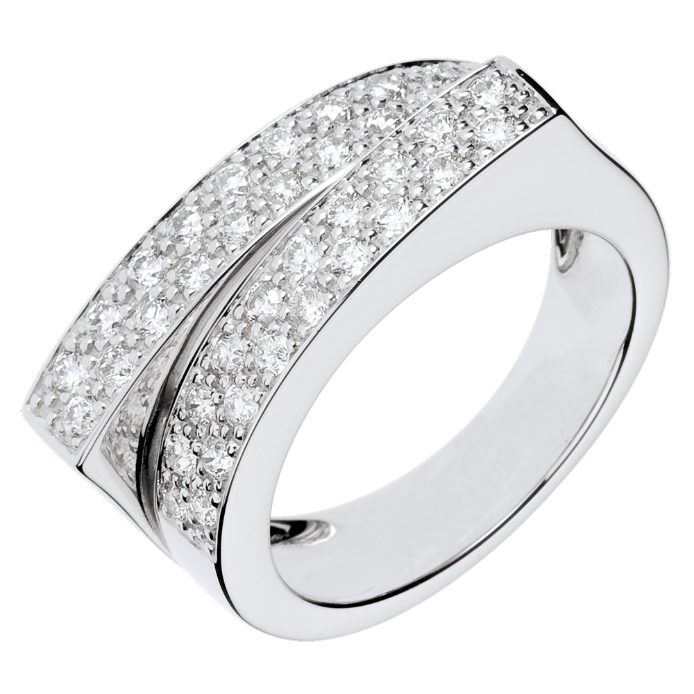 Dieser Ring besticht sowohl durch das schlichte als auch originelle Design seines traumhaften Diamantpavés auf Weißgold.