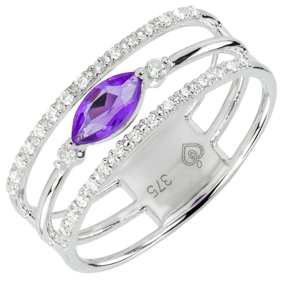 Ring Auge des Orients - Großes Modell - Amethyst und Diamanten - 9 Karat Weißgold