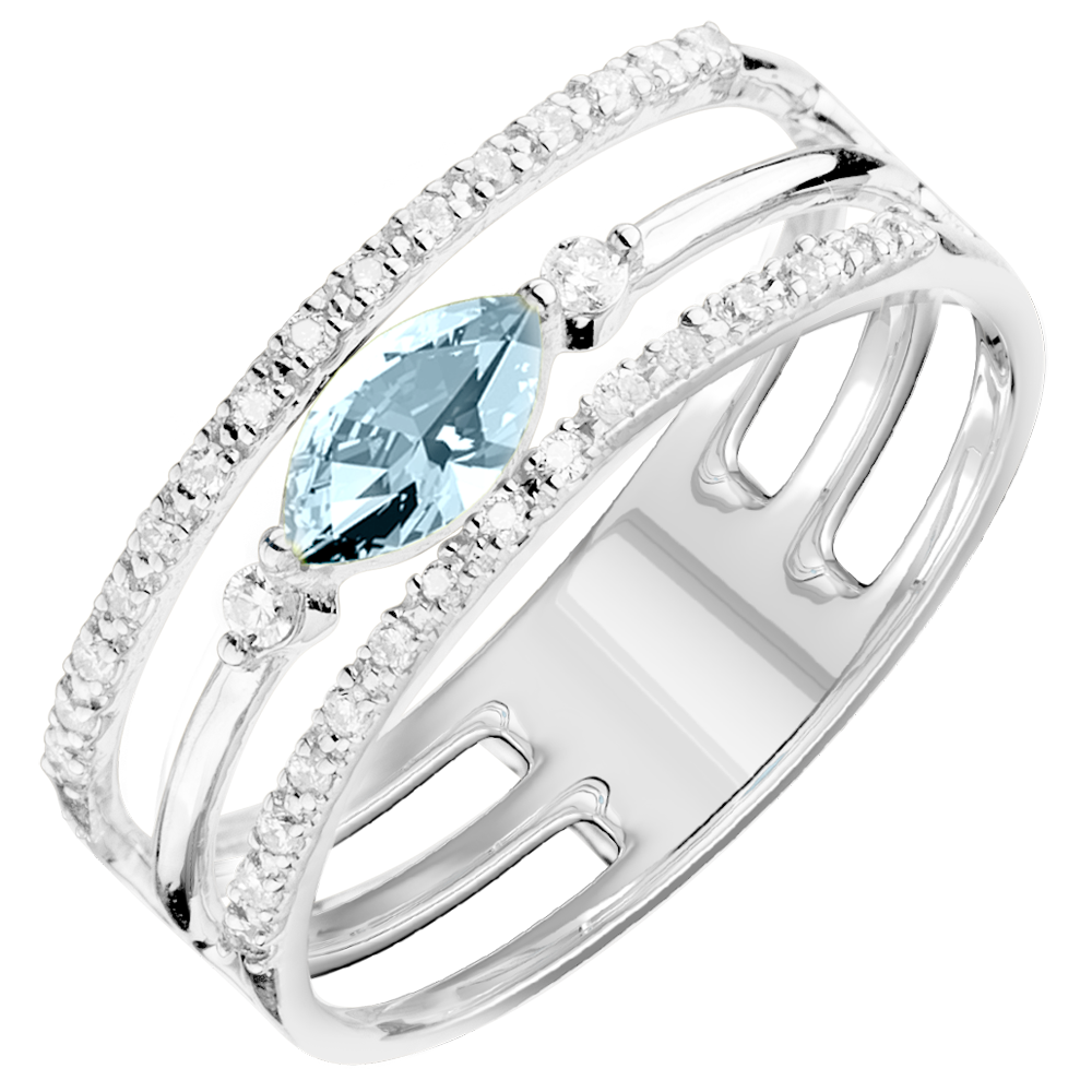 Ring Auge des Orients - Großes Modell - Topas und Diamanten - 9 Karat Weißgold