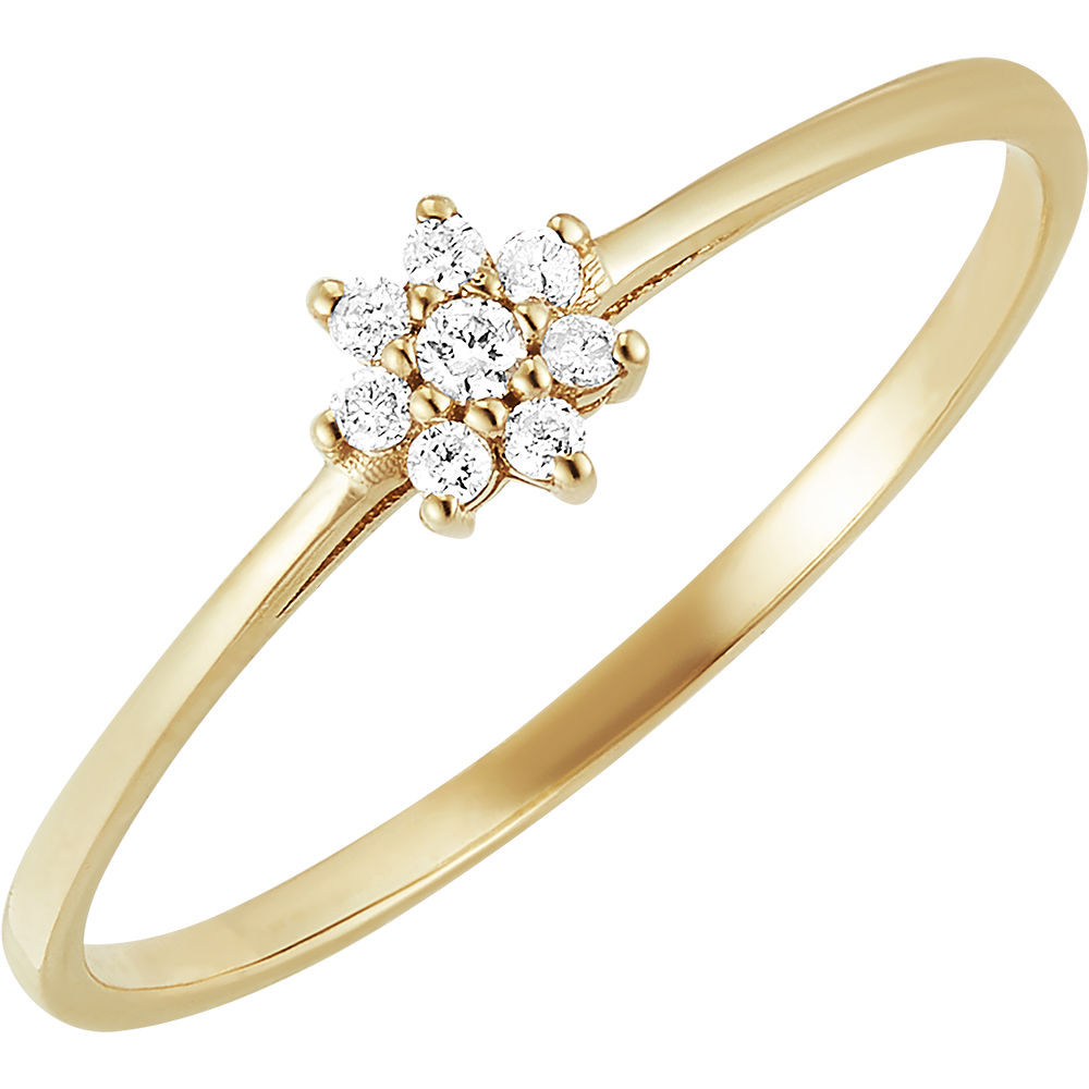 Ring Blüte - Daisy - Gelbgold, 9 Karat, mit Diamanten