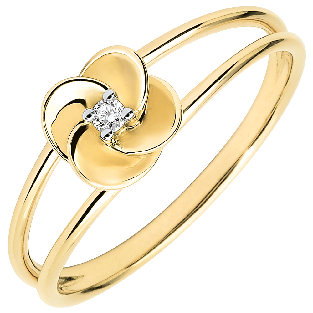Ring Blüte - Erste Rose - Gelbgold und Diamant - 18 Karat