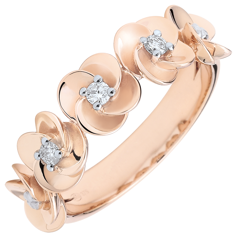 Ring Blüte - Rosenkränzchen - Roségold und Diamanten - 9 Karat
