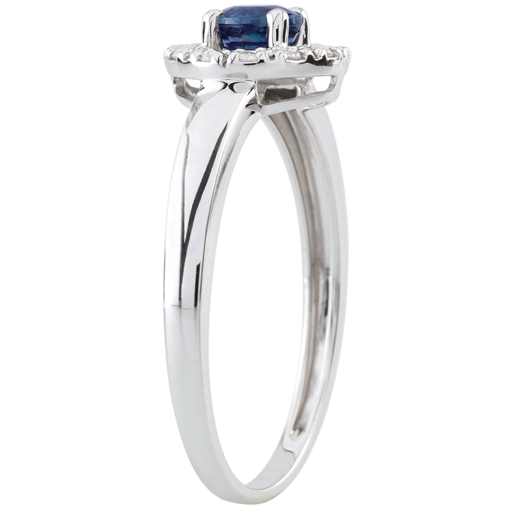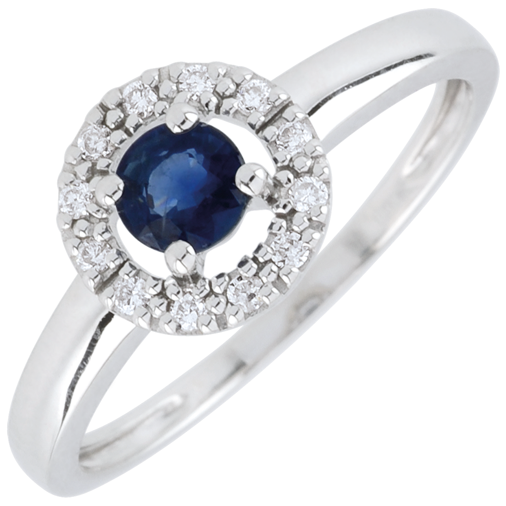 Ein mit Diamanten besetzter Kreis lässt einen Saphir erstrahlen.