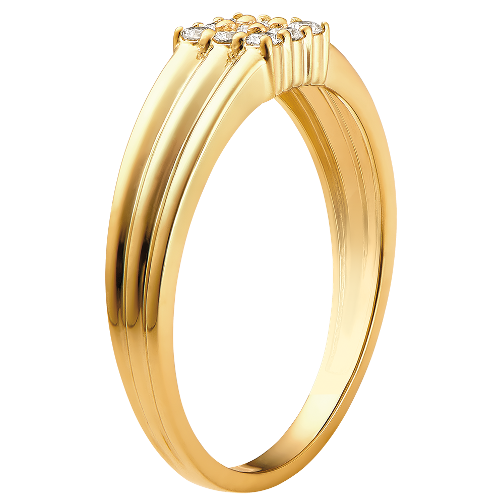 Ein zart gearbeiteter Gelbgold-Ring, der mit einem Pavé aus 9 Diamanten besetzt ist. 9 Diamanten : 0.23 Karat - Gelbgold (375/-): 2.8 g. Weitere Abmessungen