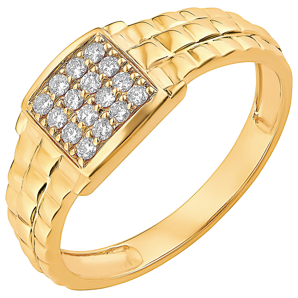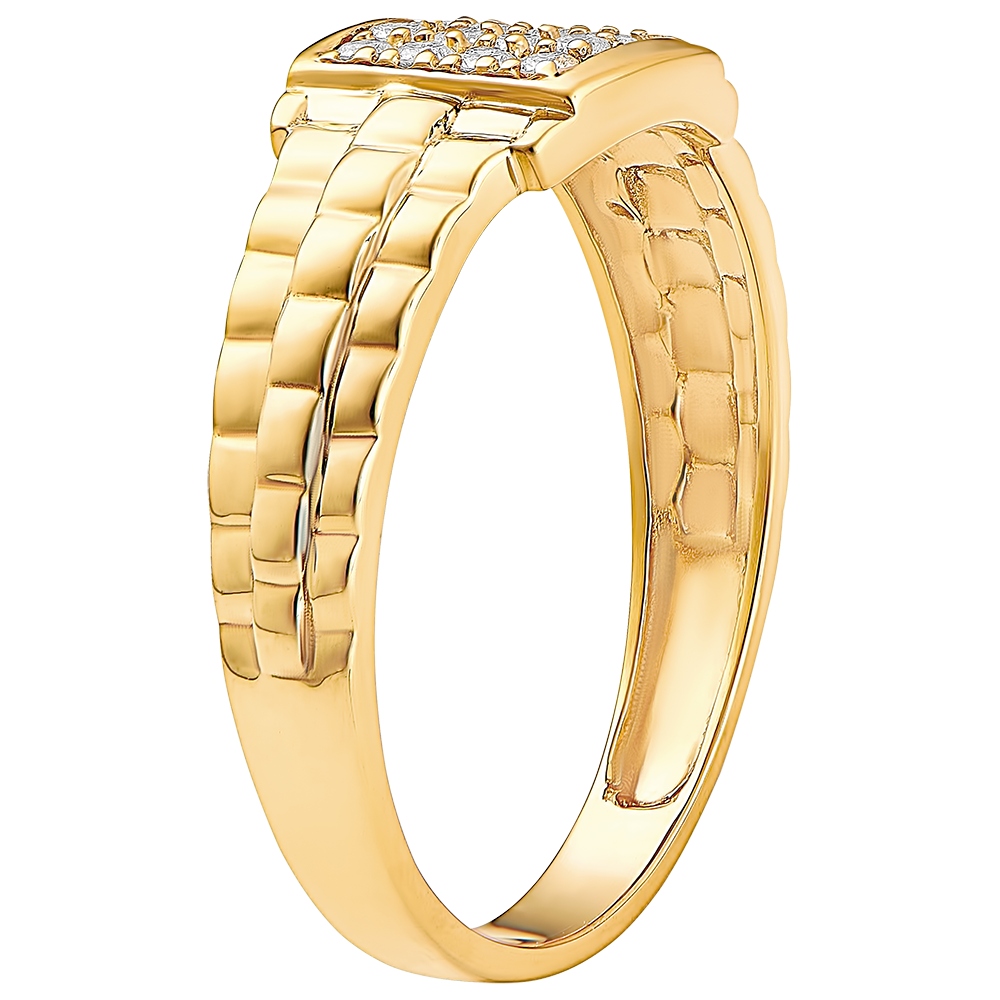 Ring Dämmerschein - Siegelring mit Gliederoptik - 9 Karat Gelbgold und Diamanten