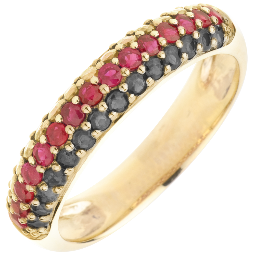 Ring Deutschland - Gold mit schwarzen Diamanten und Edelsteinen