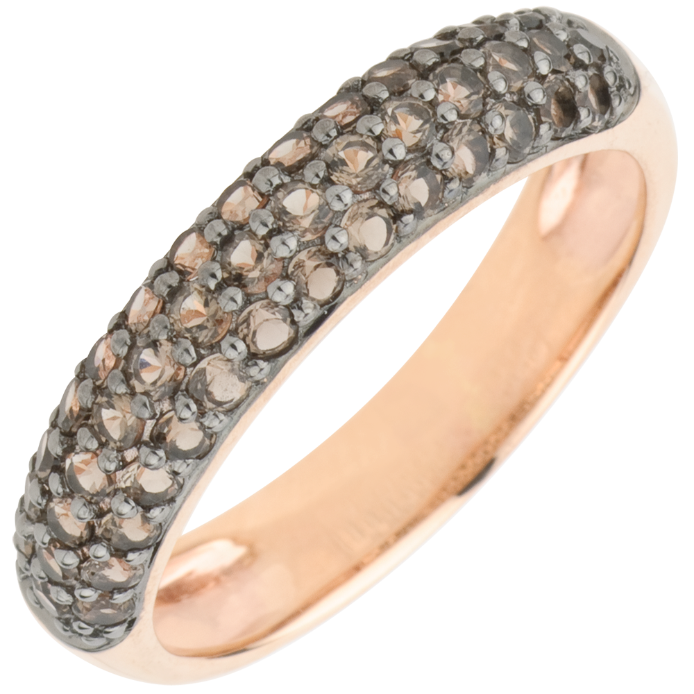 Ring Paradiesvogel - Dreierreihe - Roségold und Rauchquarz