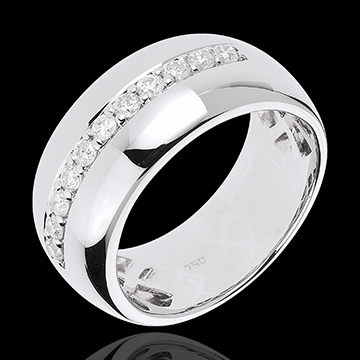 Glamourös und brillant, schlicht und elegant ist dieser breite Ring aus Weissgold, durchzogen von einer Diamantenreihe. 11 Diamanten : 0.37 Karat - Weißgold (750/-): 6.5 g. Weitere Abmessungen