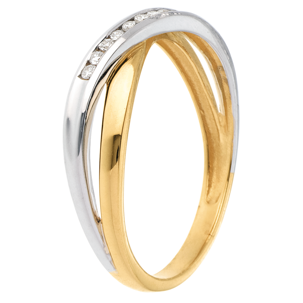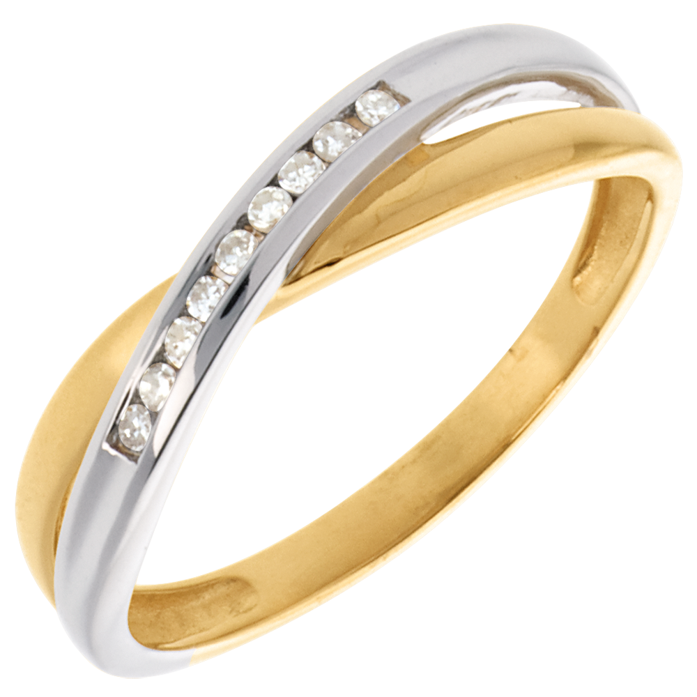 Ring Ellipse in Weiss- und Gelbgold - 9 Diamanten