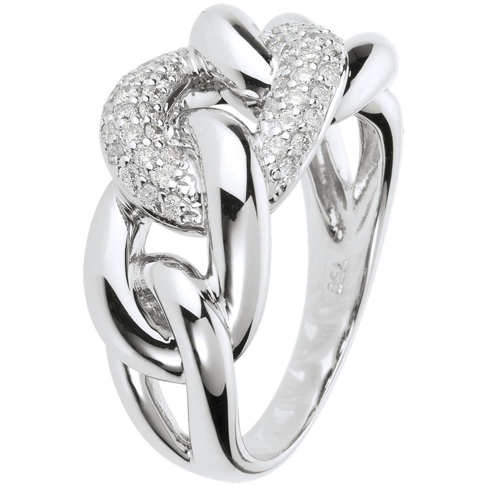 Eine zarte Einheit aus Diamanten wird von zwei Schlingen aus Weissgold umfasst. 52 Diamanten : 0.37 Karat - Weißgold (750/-): 8.9 g. Weitere Abmessungen