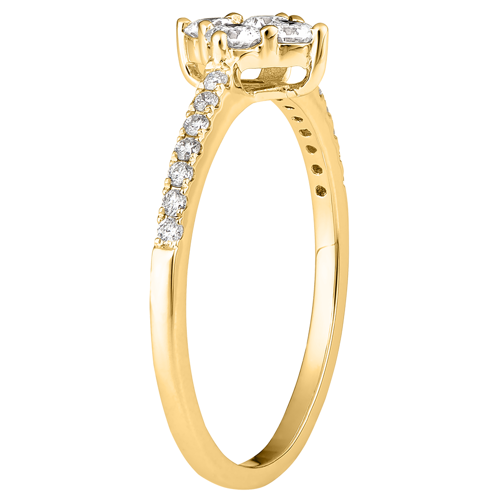 Eine quadratische Gelbgoldfassung mit 5 Diamanten verleiht diesem Ring eine edle und gleichzeitig moderne Note. Ring mit Diamanten in Halbfassung. 19 Diamanten : 0.39 Karat - Gelbgold (750/-): 1.9 g. Pavé aus natürlichen Diamanten : 19 - Weitere Abmessungen