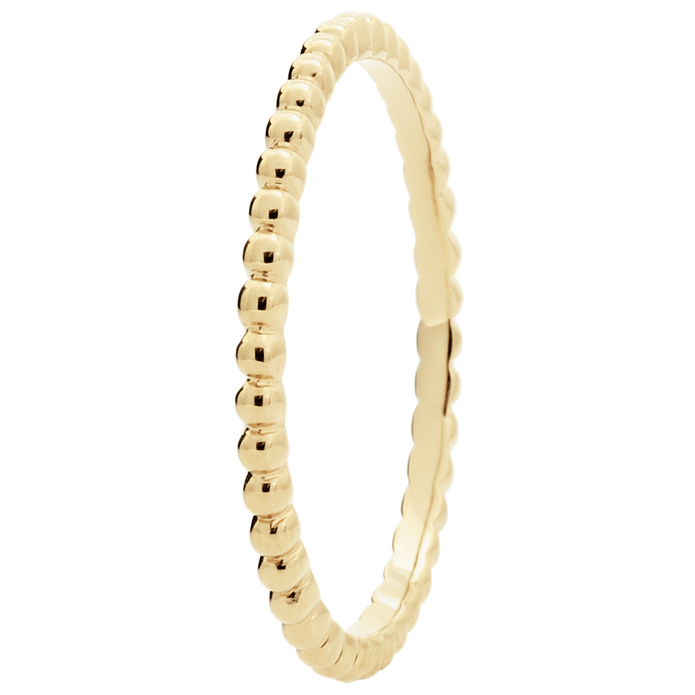 Viele kleine Gelbgoldperlen haben sich zueinandergesellt um diesen raffinierten Ring zu formen. Er eignet sich perfekt als origineller Trauring oder als modisches Detail an Ihrem Finger. Er kann problemlos mit verschiedenen Goldfarben und anderen Ringen kombiniert werden.. Gelbgold (750/-): 1.2 g. Weitere Abmessungen