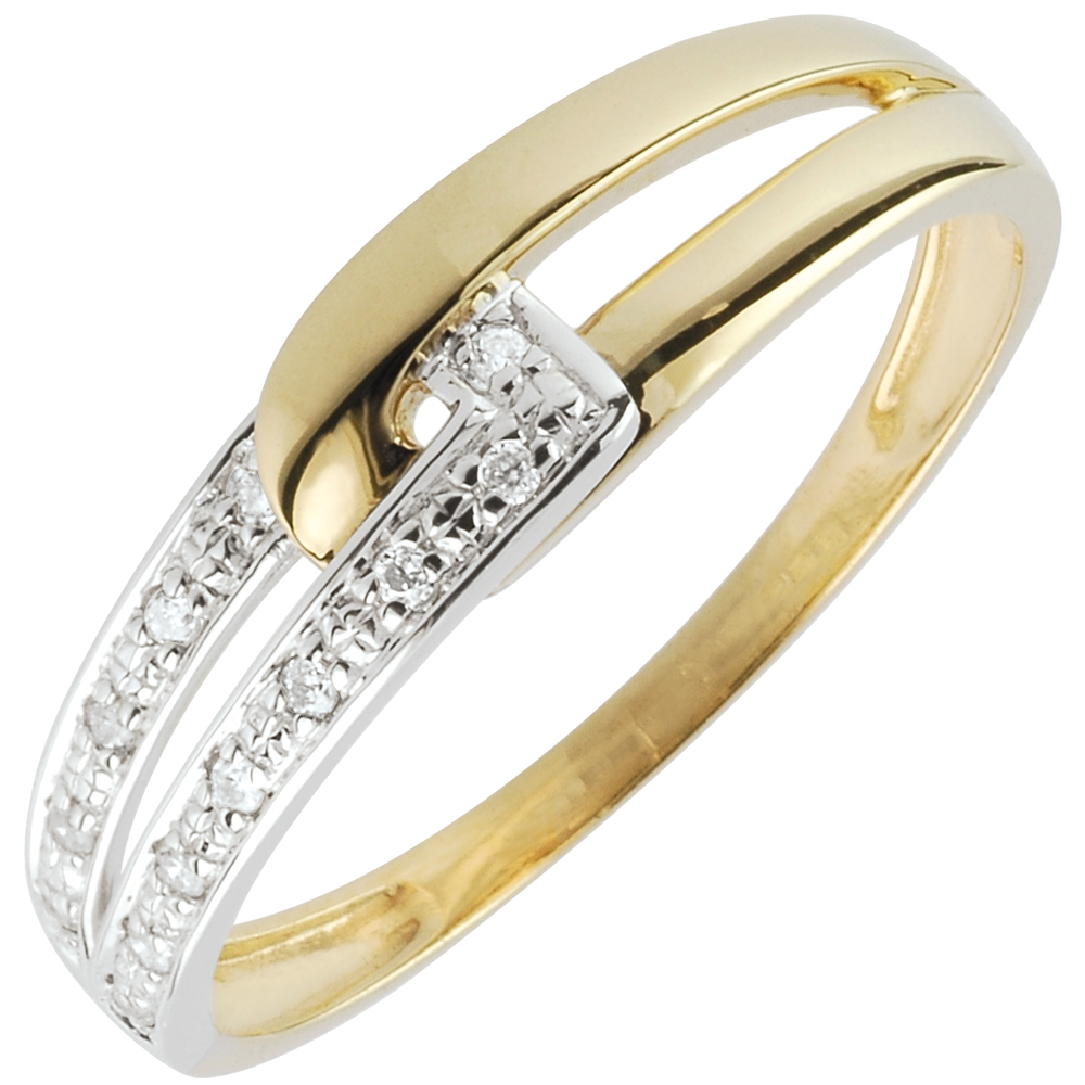 Eine gelbgolde Kurve vereint sich harmonisch mit einem Rechteck in Weißgold mit Diamanten. 13 Diamanten : 0.05 Karat - Weiß-und Gelbgold (375/-): 1.2 g. Weitere Abmessungen
