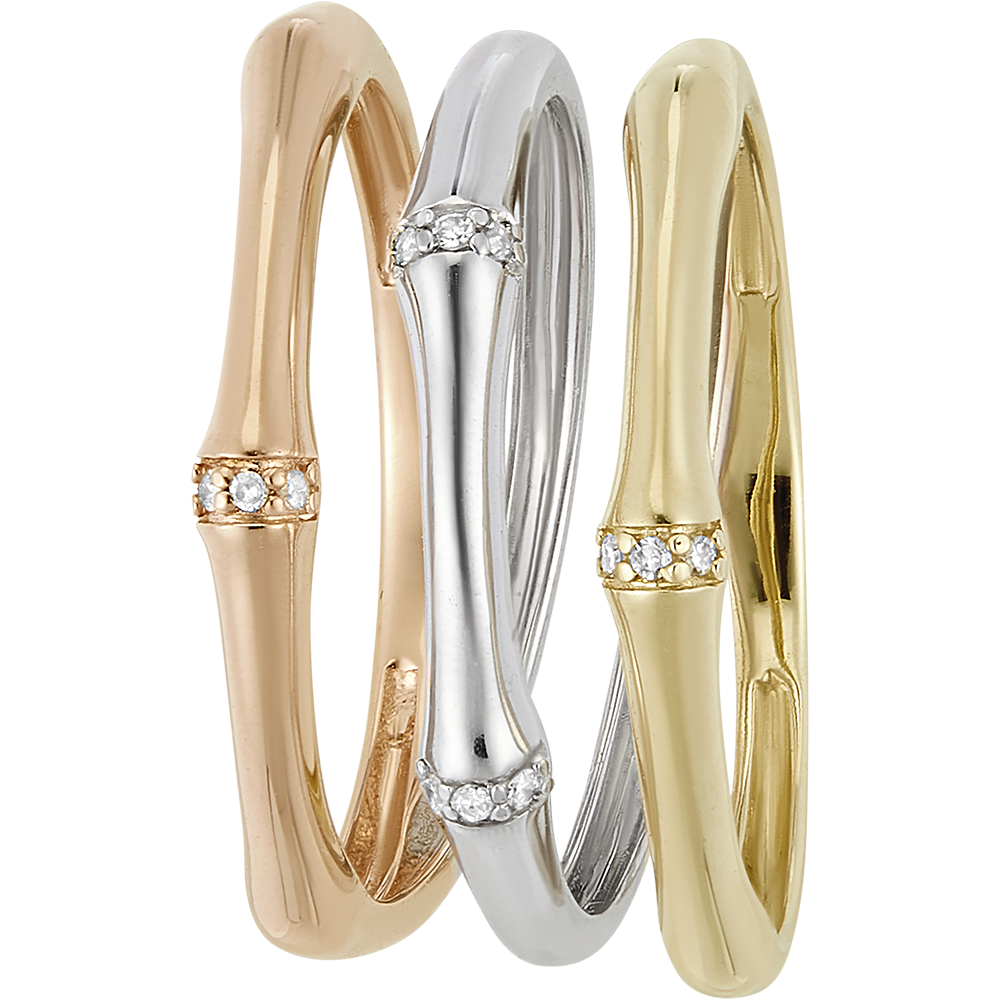Ein biegsamer und gleichzeitig solider Bambuszweig windet sich zart um den Finger und wird zu einem Ring für die Ewigkeit. An den Bambusknoten sind Diamanten in das Gold eingearbeitet.