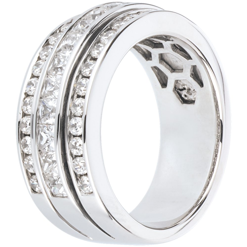 Seine drei Diamantreihen, seine Form und sein perfekter Glanz machen diesen Ring so außergewöhnlich. 43 Diamanten : 1.46 Karat - Weißgold (750/-): 12 g. Weitere Abmessungen