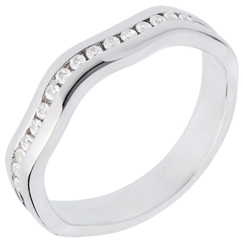 Eine geschwungene Kanalfassung aus Weissgold hält 16 funkelnde Diamanten, ein berauschendes Abenteuer. 16 Diamanten : 0.14 Karat - Weißgold (750/-): 3.9 g. Weitere Abmessungen