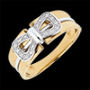 Ein Band aus Gelbgold umschlingt Weißgold und wird verbunden durch eine mit Diamanten verzierten Schleife aus Weißgold. 16 Diamanten : 0.05 Karat - Weiß-und Gelbgold (750/-): 3.6 g. Weitere Abmessungen