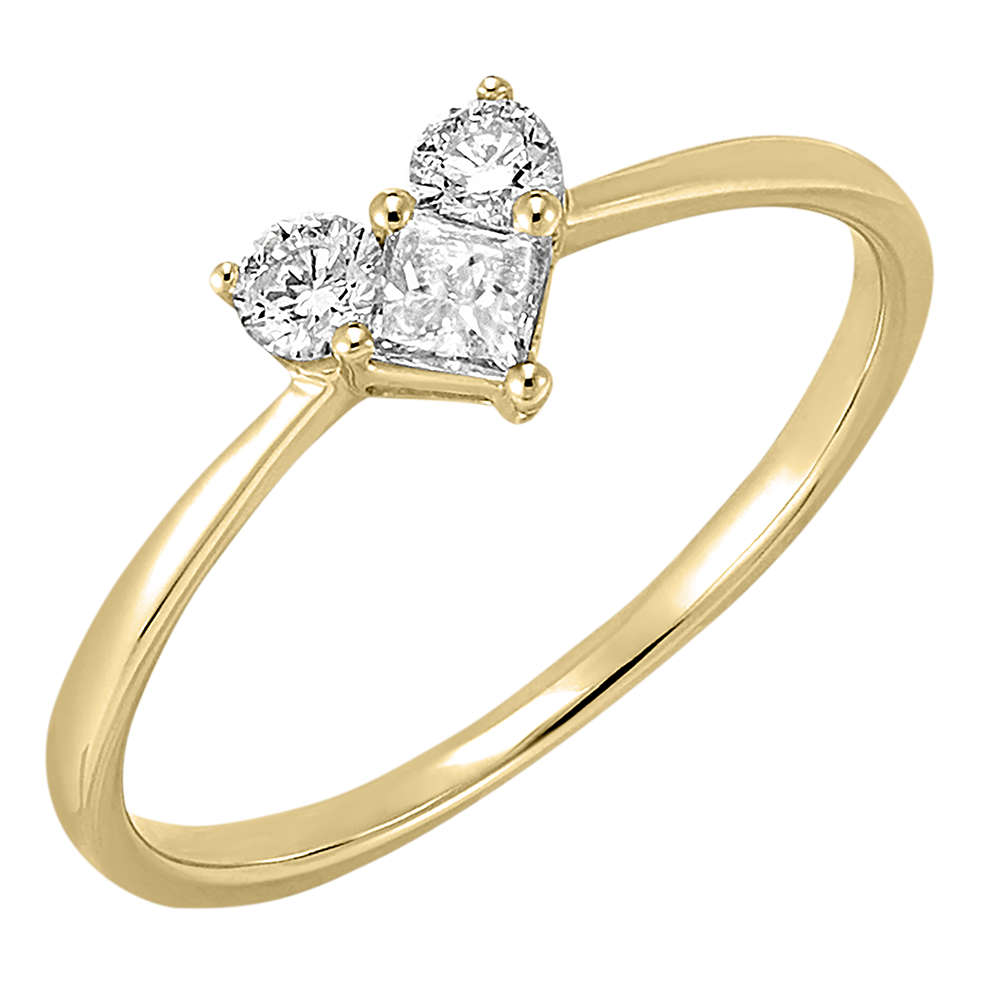 Ein Herz mit zartem 3-Diamanten-Besatz auf einem Ring aus Gelbgold. Ein von Edenly poetisch neu interpretierter Schmuck-Klassiker für eine besonders berührende Liebeserklärung. Oh, mini lovely! 3 Diamanten : 0.29 Karat - Gelbgold (750/-): 1.3 g. Pavé aus natürlichen Diamanten : 3 - Weitere Abmessungen