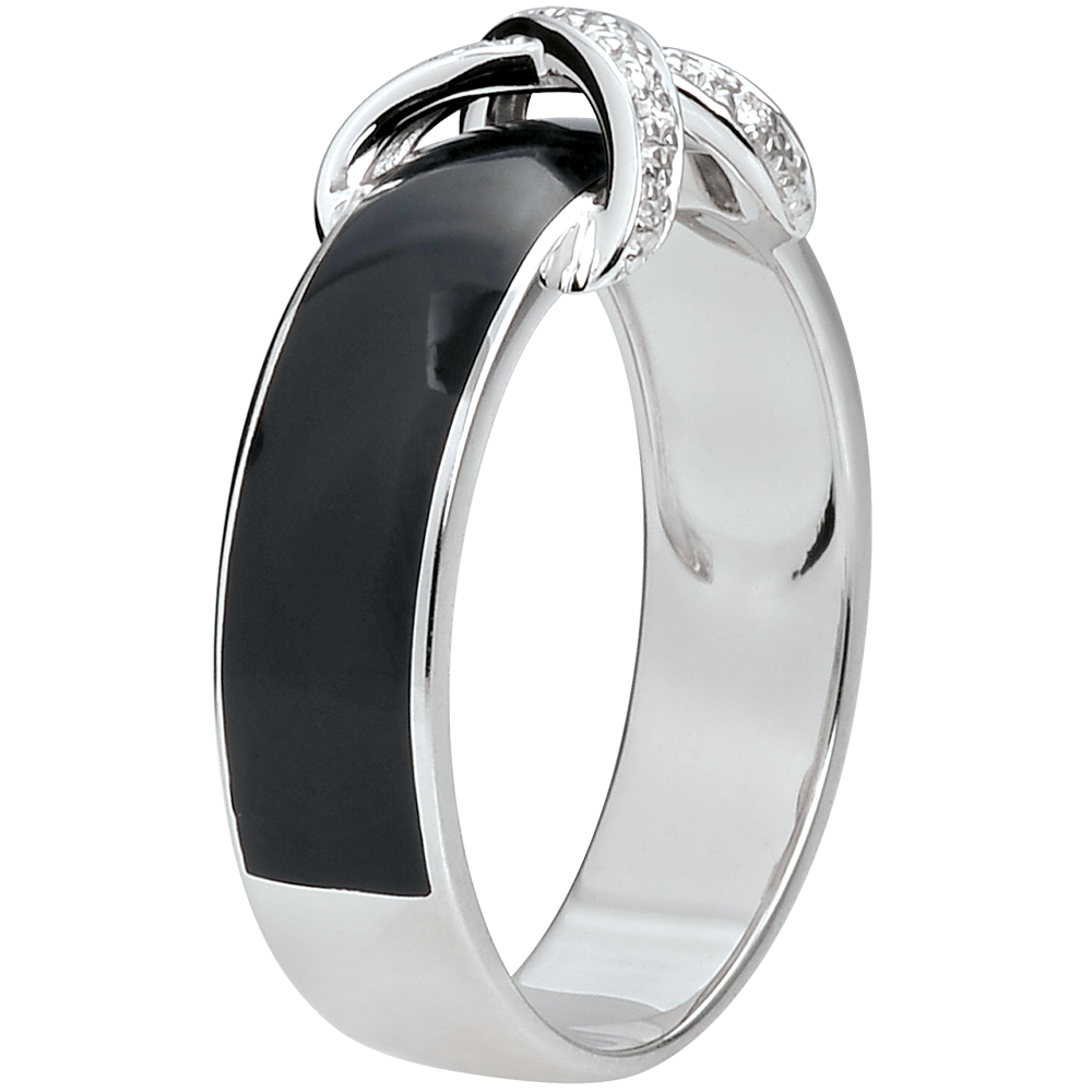 Ring Dämmerschein - Kreuzung schwarzer Lack und Diamanten - 18 Karat