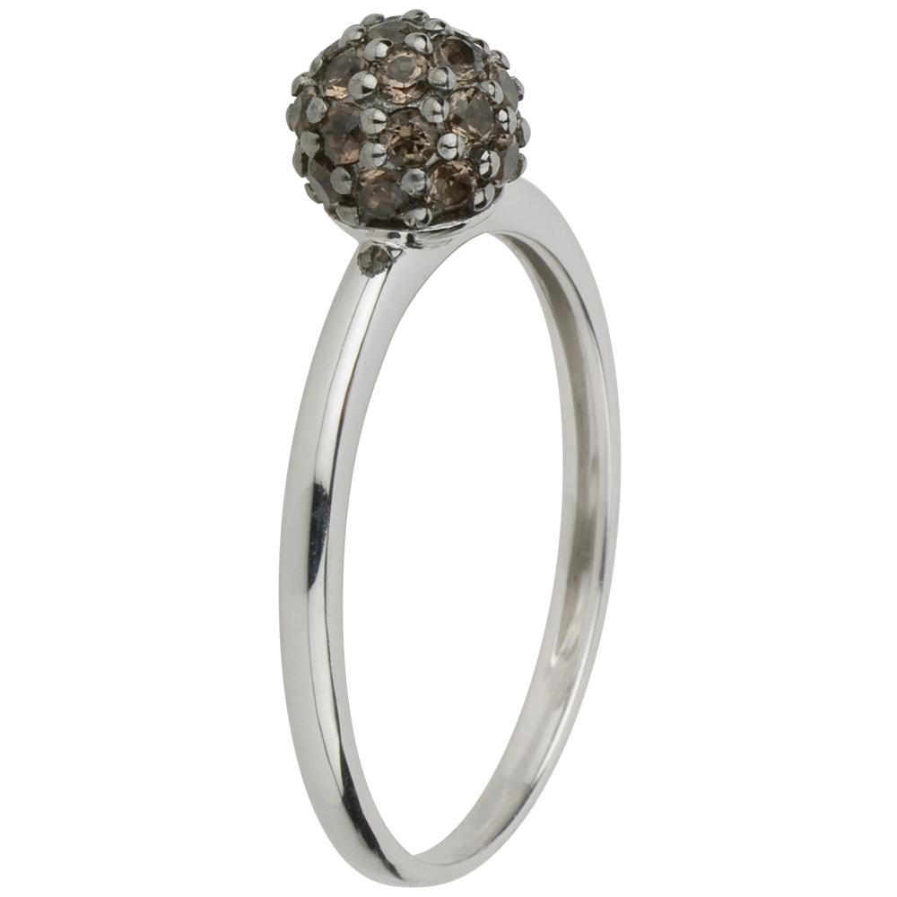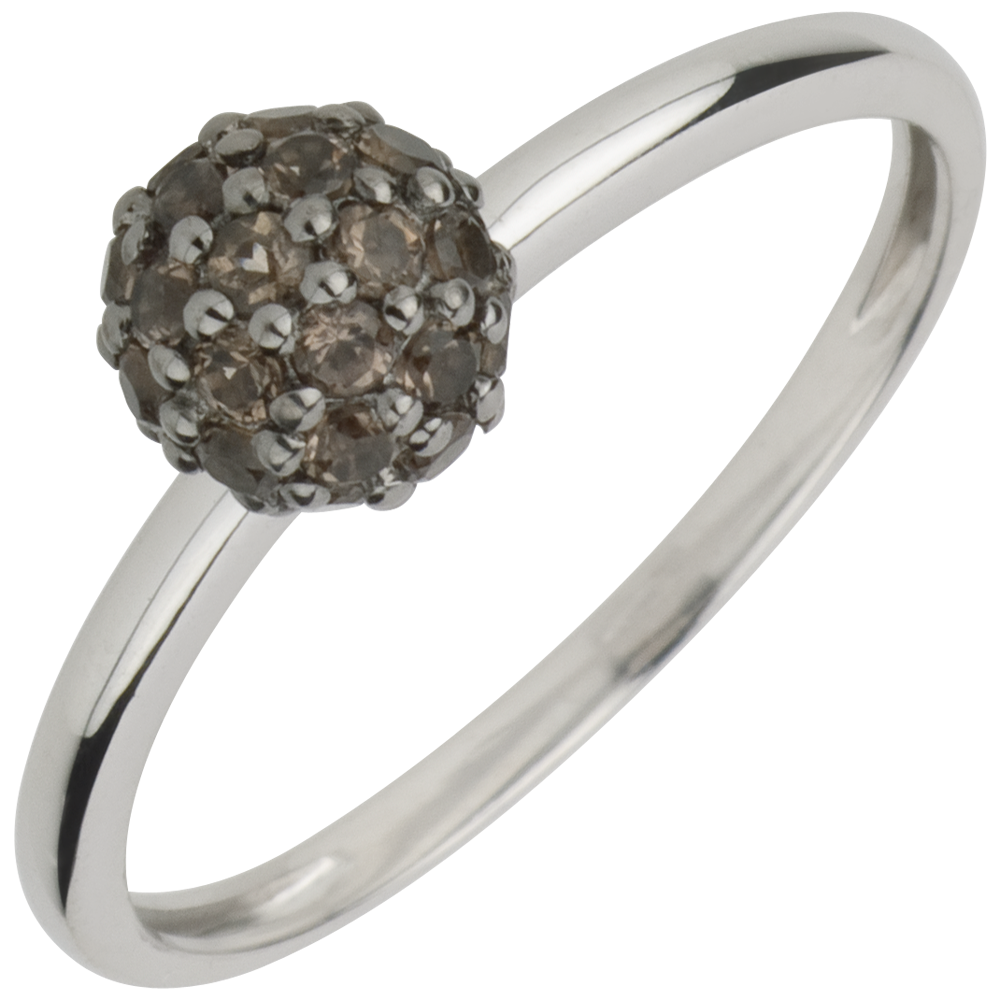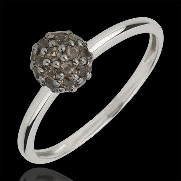 Ring Paradiesvogel - Kugel - Weißgold und Rauchquarz